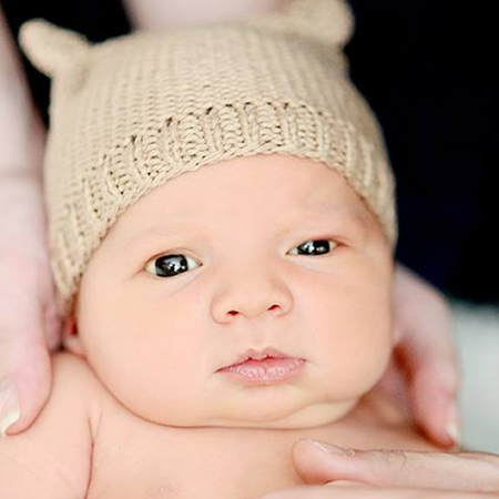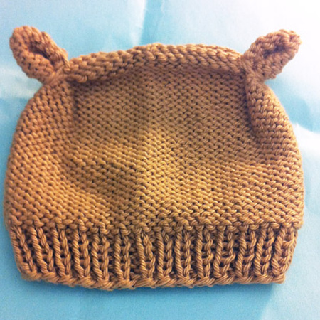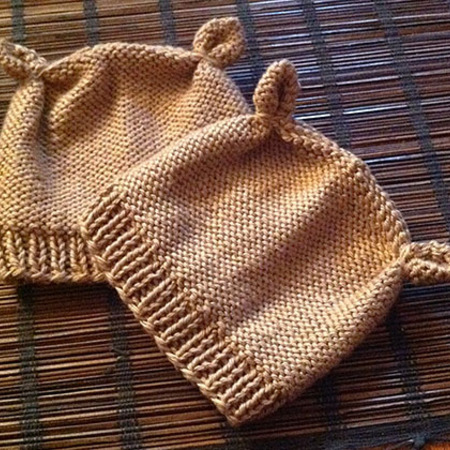 This adorable newborn baby hat is easy to knit and only takes about 2 hours from start to finish. The hat features ribbing at the brim, reverse stockinette texture, and little chipmunk ears.