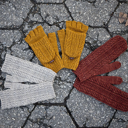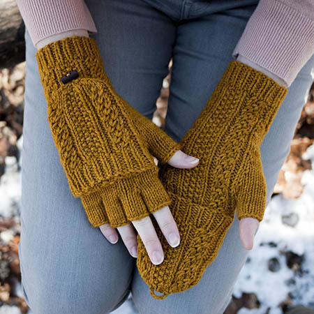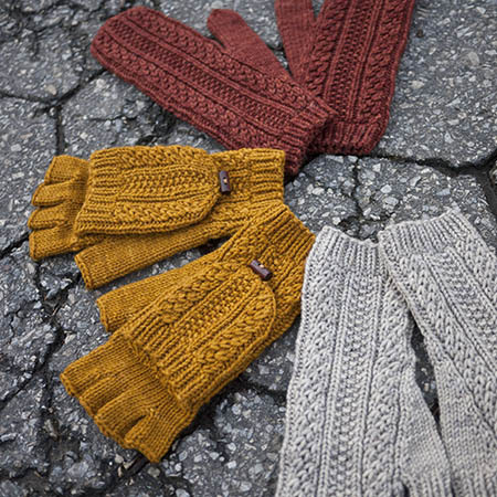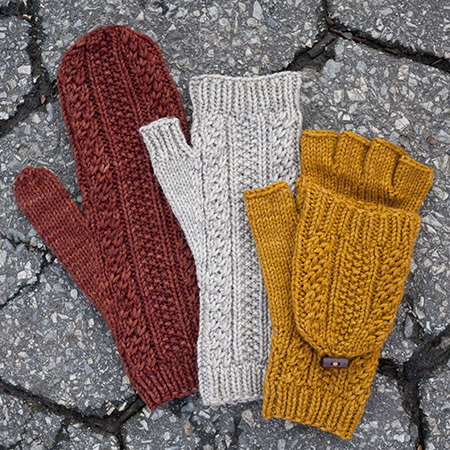 These handsome mittens were inspired by my own father's desire for basic, yet classy cold weather gear. The pattern includes instructions to knit three unisex styles: classic mittens, fingerless mitts, and convertible gloves—choose your own adventure! Each style features a super easy cable pattern that coordinates perfectly with my Cabled Dad Hat design. The project is a quick knit worked with worsted weight yarn, but on smaller needles which produces a dense fabric to keep your hands extra warm. Directions for three sizes are included along with tips for a custom fit.