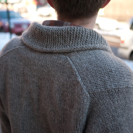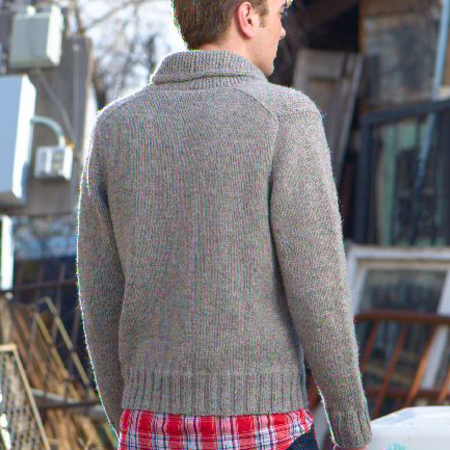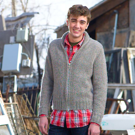 This classic men’s zippered cardigan features a garter stitch border with an i-cord edging and shawl collar. The body is knitted in one piece along with the border and collar from the bottom-up. The shoulder seams fall slightly to the back-side making a less bulky silhouette while still providing structure. Stitches for the top-down sleeves are picked up around the armholes and short rows form the sleeve cap. The cardigan has a really great fit and is easily adjusted for men of different heights.