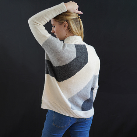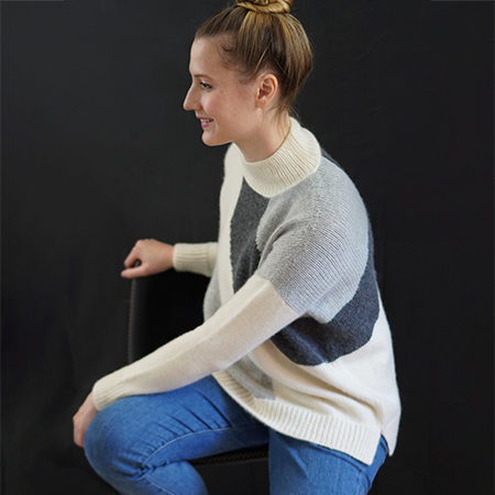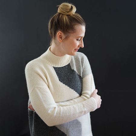 The Judd Pullover makes a bold yet elegant statement with large, minimalist intarsia motifs on the front and back inspired by the minimalist modern artwork of Donald Judd. The boxy silhouette is sophisticated and flattering with a modified drop shoulder, a split hem and a cozy funnel neck. Refined details, like subtle shaping around the shoulders and a lateral braid at the collar’s base, elevate the design even further. The intarsia design is very easy, perfect for a first- timer trying out this fun technique.