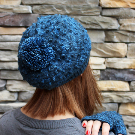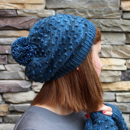 The Zea Hat features a fun popcorn stitch pattern and a pompom at the crown. Twisted ribbing at the brim provides crisp structure around the face and helps keep the slouchy style perfectly in place. The hat is worked in the round from the brim to the crown. The optional attached pompom is a perfect finishing touch.